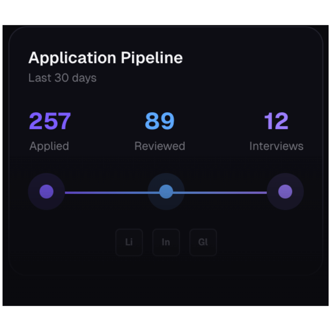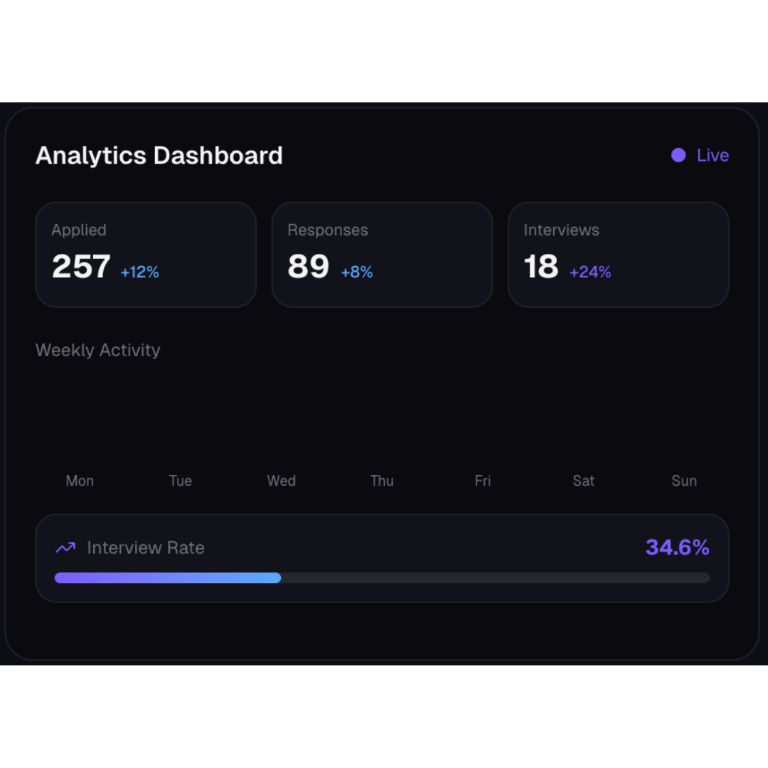Monitor all applications from a single dashboard, track responses, and continuously optimize outreach to improve interview conversion rates.