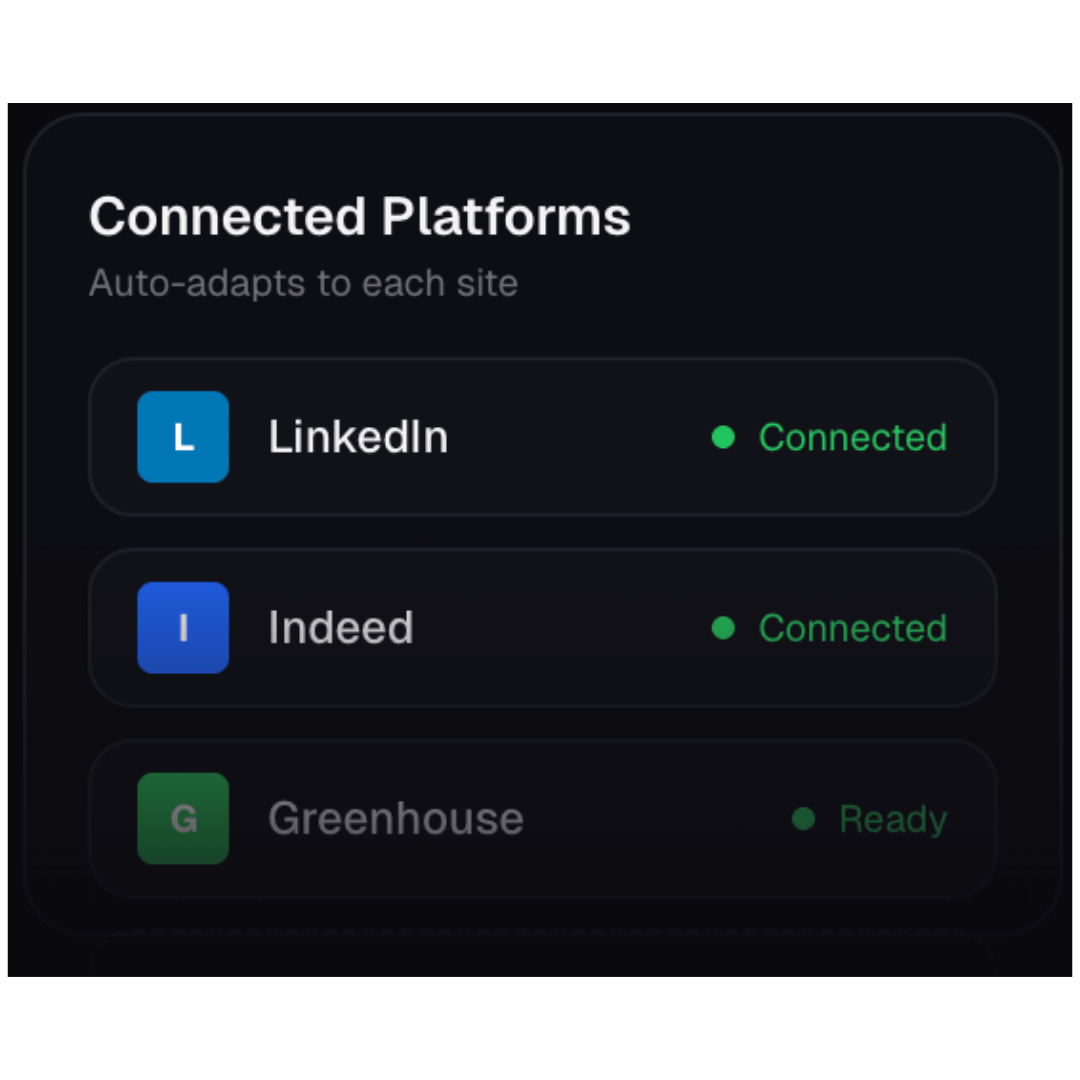 Every platform works differently. Oubo adapts application flows for each job board and company career page.